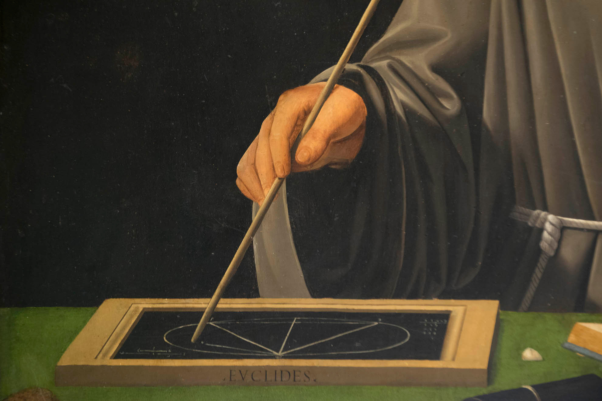 What starts as the straightforward administration of pictorial space—how do we place sculpturally modelled objects in coherent relation to one another on a flat plane?—develops into the discovery and exploration of a different sort of conceptual space, so that in the course of a little more than two centuries of artistic and scientific meditation on, among other things, optics and infinity, we move from this: