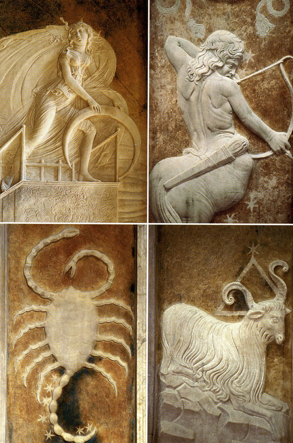Pius II, Sigismondo’s great enemy, described the Tempio as being ‘full of pagan gods and profane things’. Agostino’s reliefs decorate the entrances to the side chapels, and while it was not very unusual in the quattrocento to demarcate sacred spaces in this way, it was always contentious. Agostino’s reliefs, in any case, are not an exercise in demarcation but in saturation.
